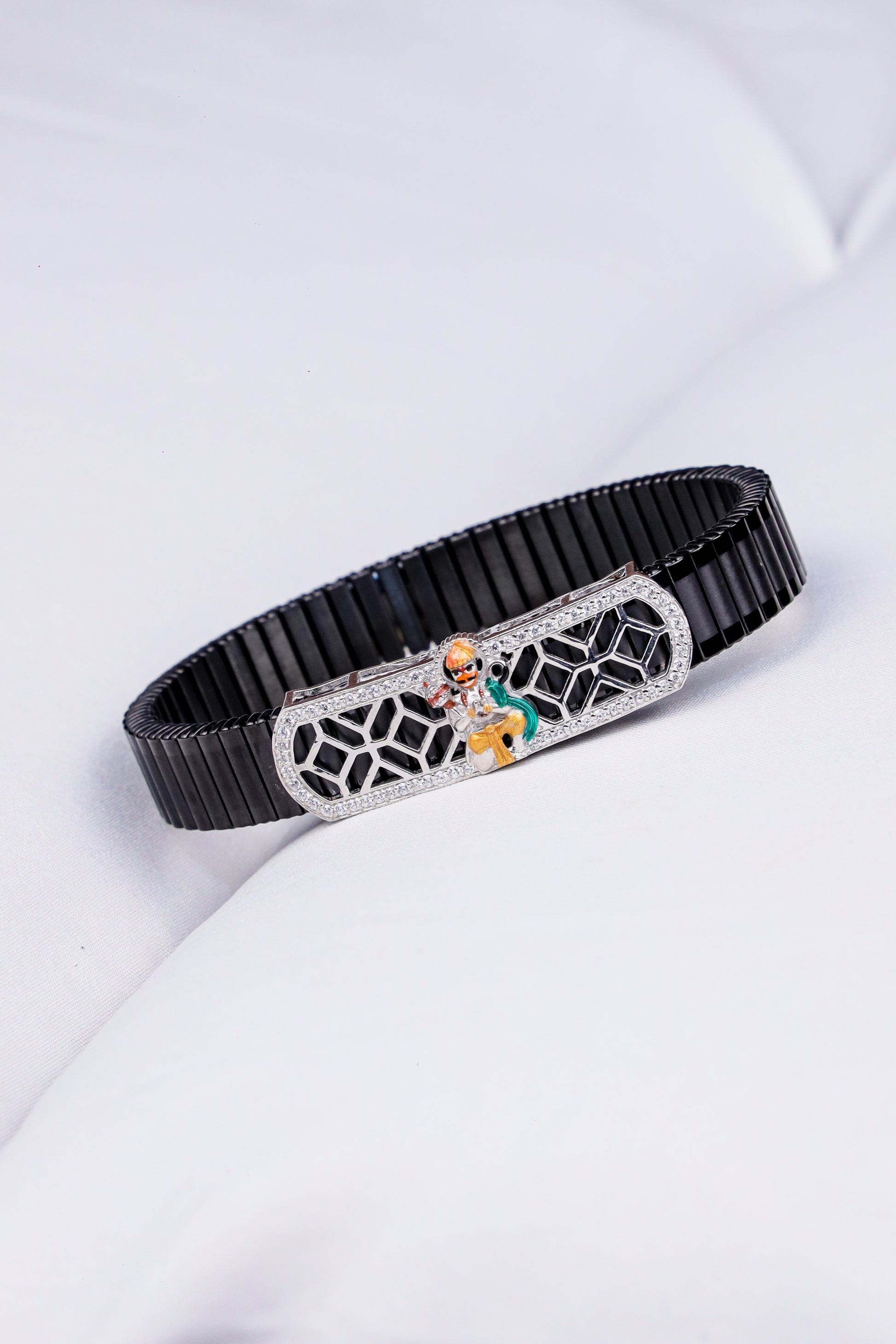 Hanuman Ji Black Strap Bracelet with CZ Detailing