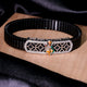 This unique bracelet features a beautifully crafted Hanuman Ji motif, symbolizing strength, devotion, and protection. The design is accented with shimmering cubic zirconia stones and a sleek black strap for a bold, modern look. Perfect for men who seek both spirituality and style, this bracelet is an ideal accessory for daily wear or special occasions.