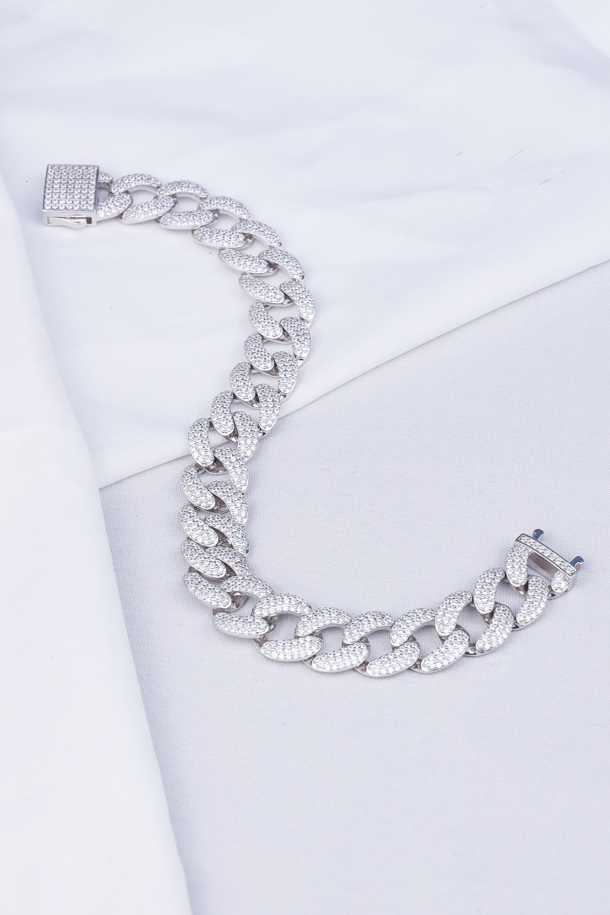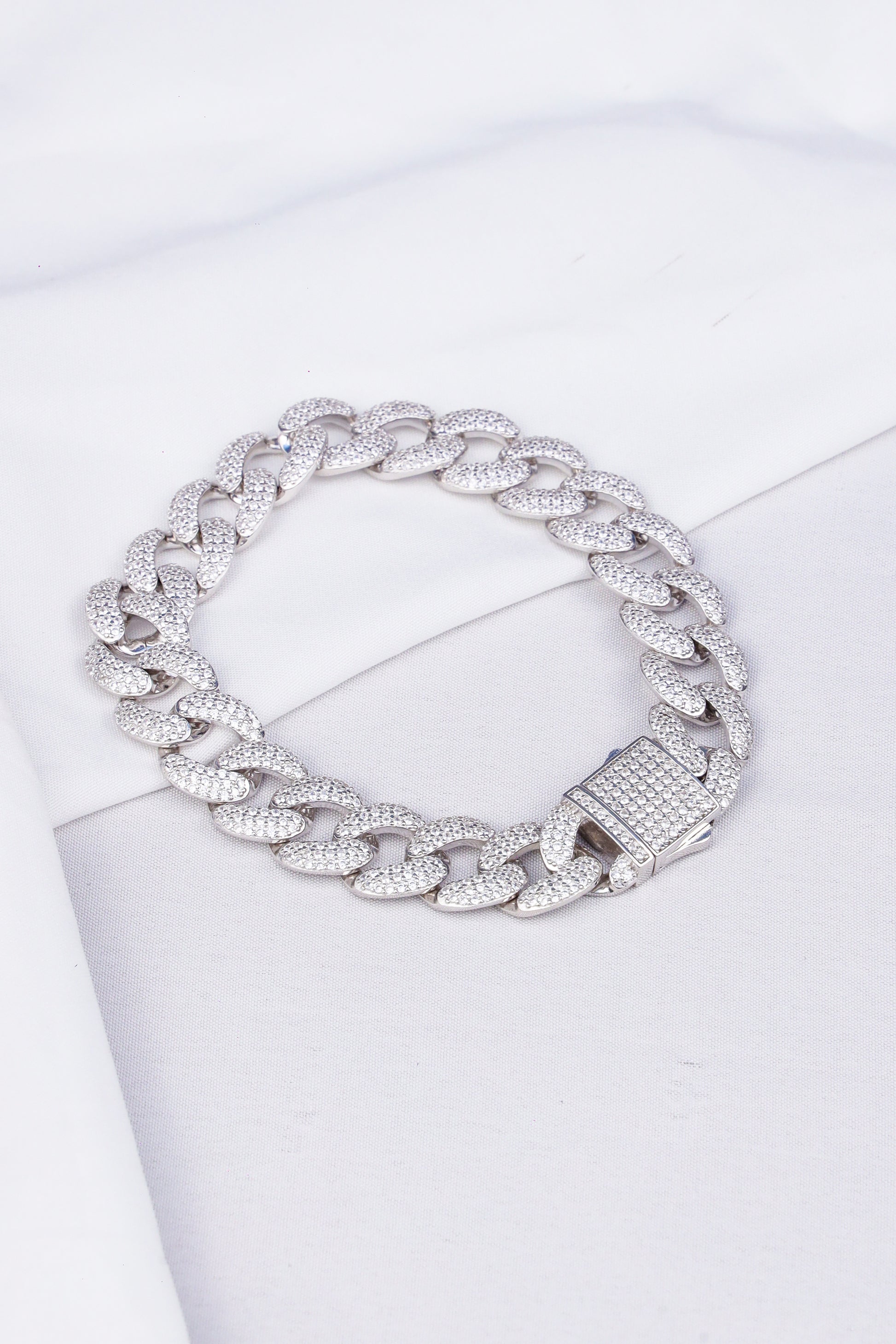 Men’s Iced Cuban Link Bracelet – Silver Finish