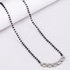 This silver mangalsutra features a graceful traditional design with intricate detailing, symbolizing love and commitment.